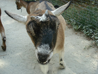 Templeton is an African Pygmy Goat who was born at the museum on January 14, 1997. He is currently the oldest goat we have, but is still quite feisty and playful. He lives in our farmyard with three other goats and Lightning, the donkey. Often you can find Templeton in a playful game of head-butt with the other goats, or scratching his head on one of the brushes that are attached to the fence posts of their yard.